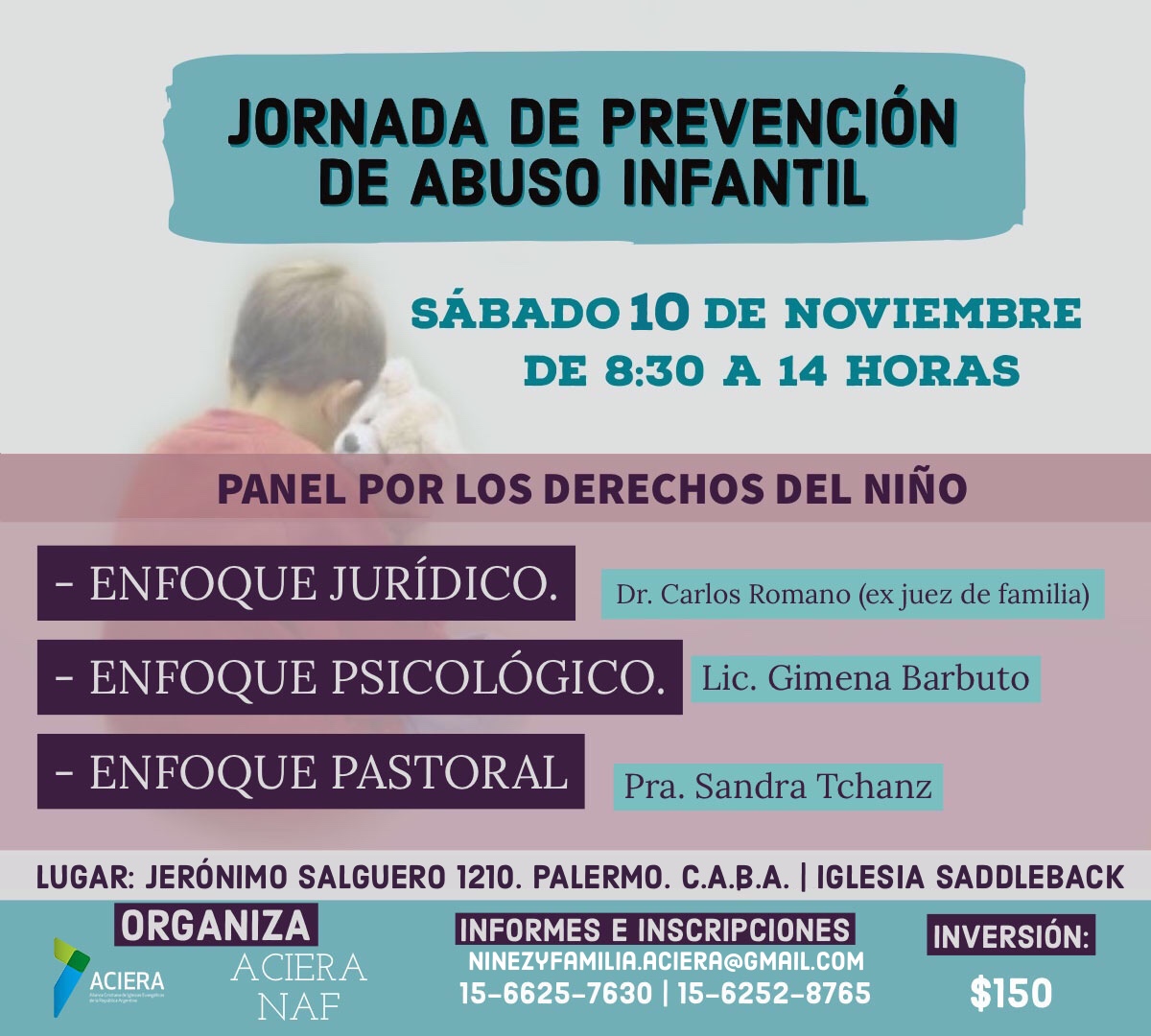 Por este motivo, ACIERA a través de la Mesa de Niñez, Adolescencia y Familia realizará la Tercera Jornada de Prevención en contra el Abuso Infantil. Por tal motivo, invitamos a pastores, líderes, padres y maestros a concurrir y capacitarse y luchar por los derechos de la niñez.