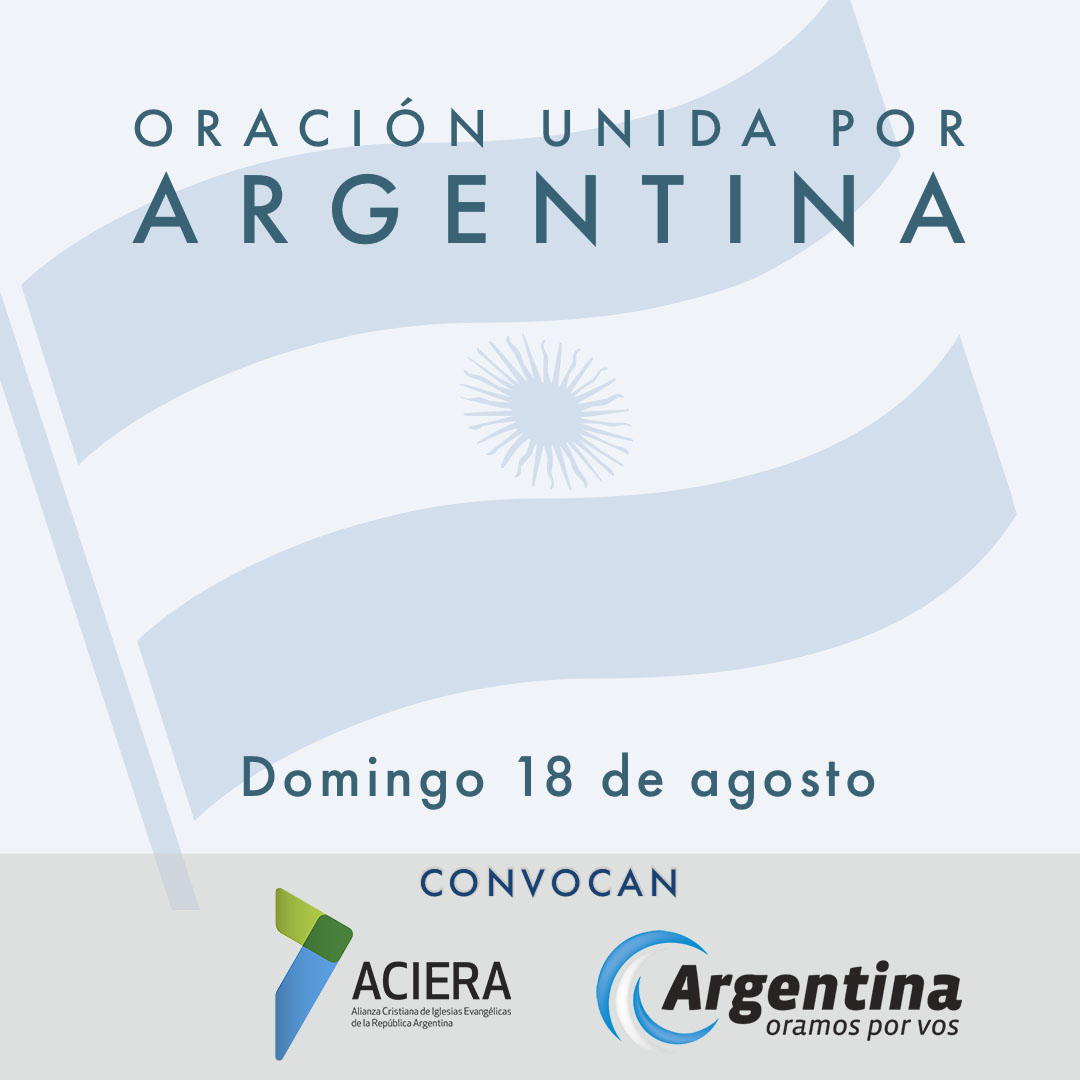 Ante la difícil situación que atraviesa nuestra nación, el Consejo Directivo Nacional de ACIERA y Argentina Oramos por Vos han decidido invitar al pueblo de Dios a sumarse en oración el próximo domingo 18 de agosto en los cultos y servicios a Dios.