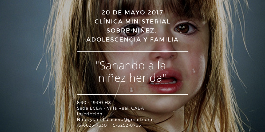 El sábado 20 de mayo próximo se realizará en las instalaciones de la Escuela Cristiana Evangélica Argentina (ECEA), sita en Irigoyen 2150 en el barrio de Villa Real, Ciudad Autónoma de Buenos Aires, esta clínica ministerial bajo el lema «Sanando a la niñez herida». Habrá distintas plenarias, talleres y stands. La jornada se extenderá entre las 8.30 y las 19 horas.