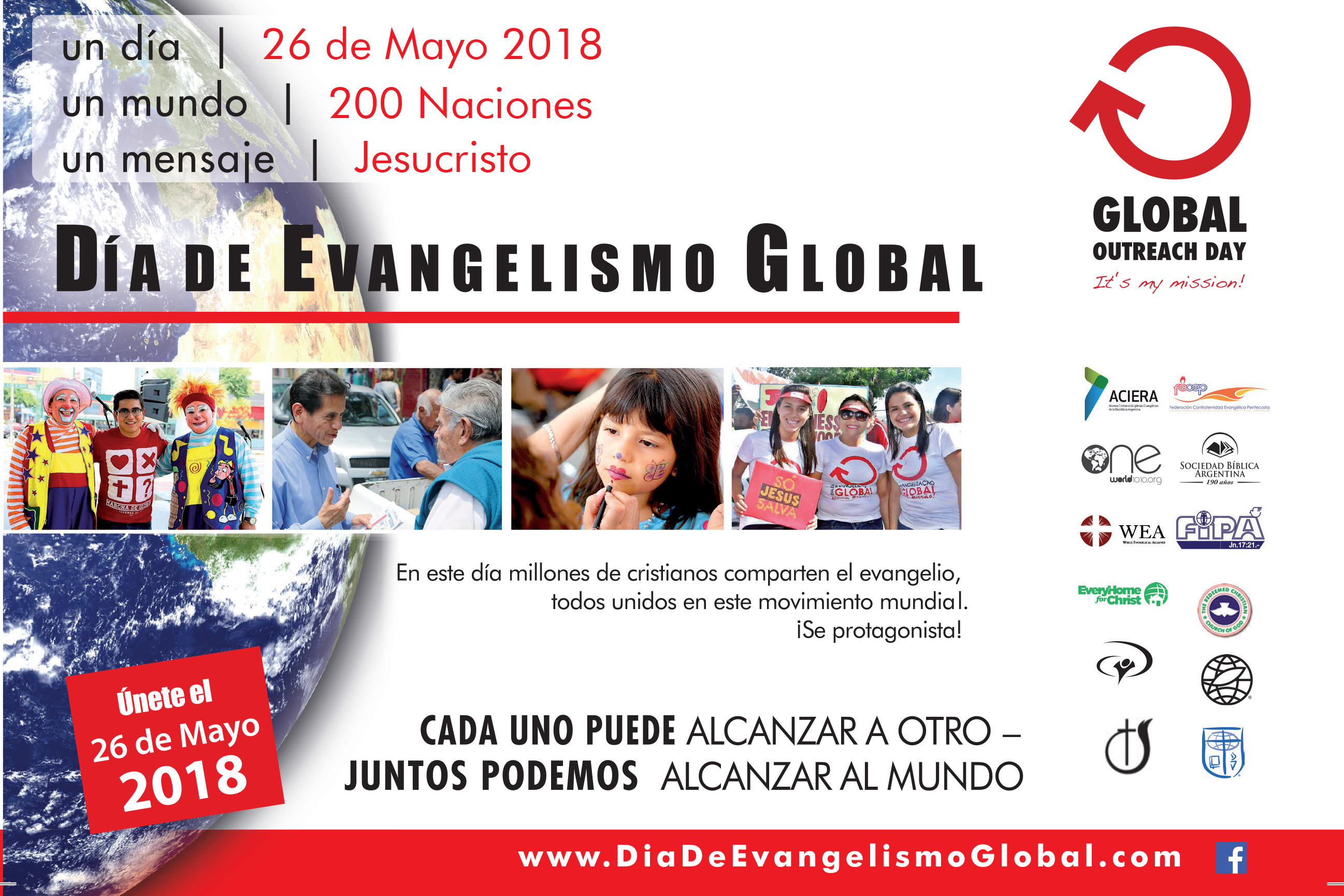 El sábado 26 de mayo se celebra la jornada evangelística de características históricas. Todo el país se está movilizando para alcanzar a miles con el Evangelio de Jesucristo. Ya es el quinto año de este día en la Argentina, donde todas las provincias han participado activamente. Las formas de evangelizar no tienen límites y ¡todos están invitados a ser parte!