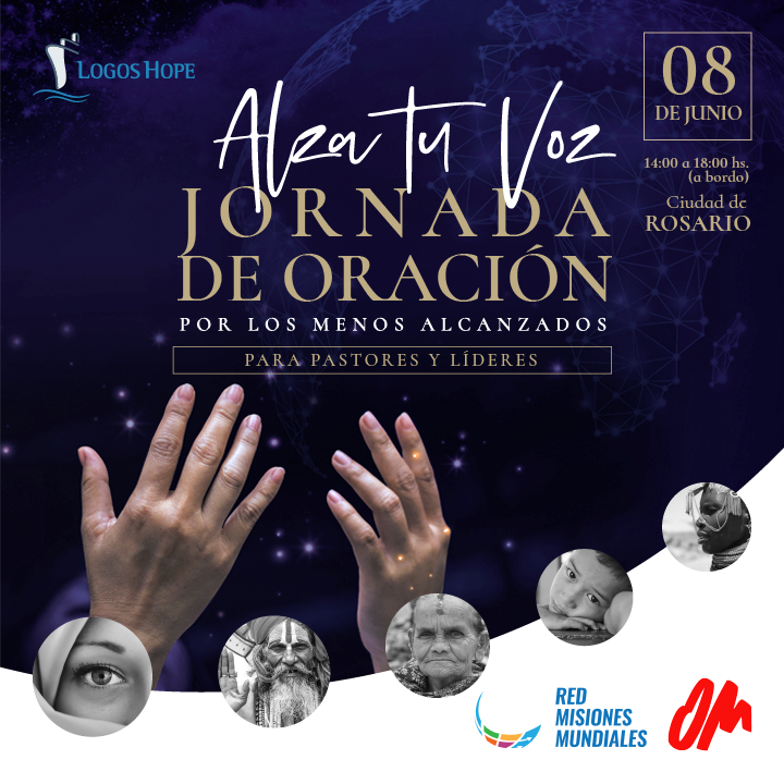 En el marco de la visita del barco Logos Hope, la biblioteca flotante más grande del mundo que arribará a la ciudad de Rosario se realizará una jornada especial de oración denominada «Alza tu voz» a llevarse a cabo a bordo de la embarcación el próximo 8 de junio entre las 14 y 18 horas. La misma tiene lugar en conmemoración del Día Internacional de Oración por los Menos Alcanzados.