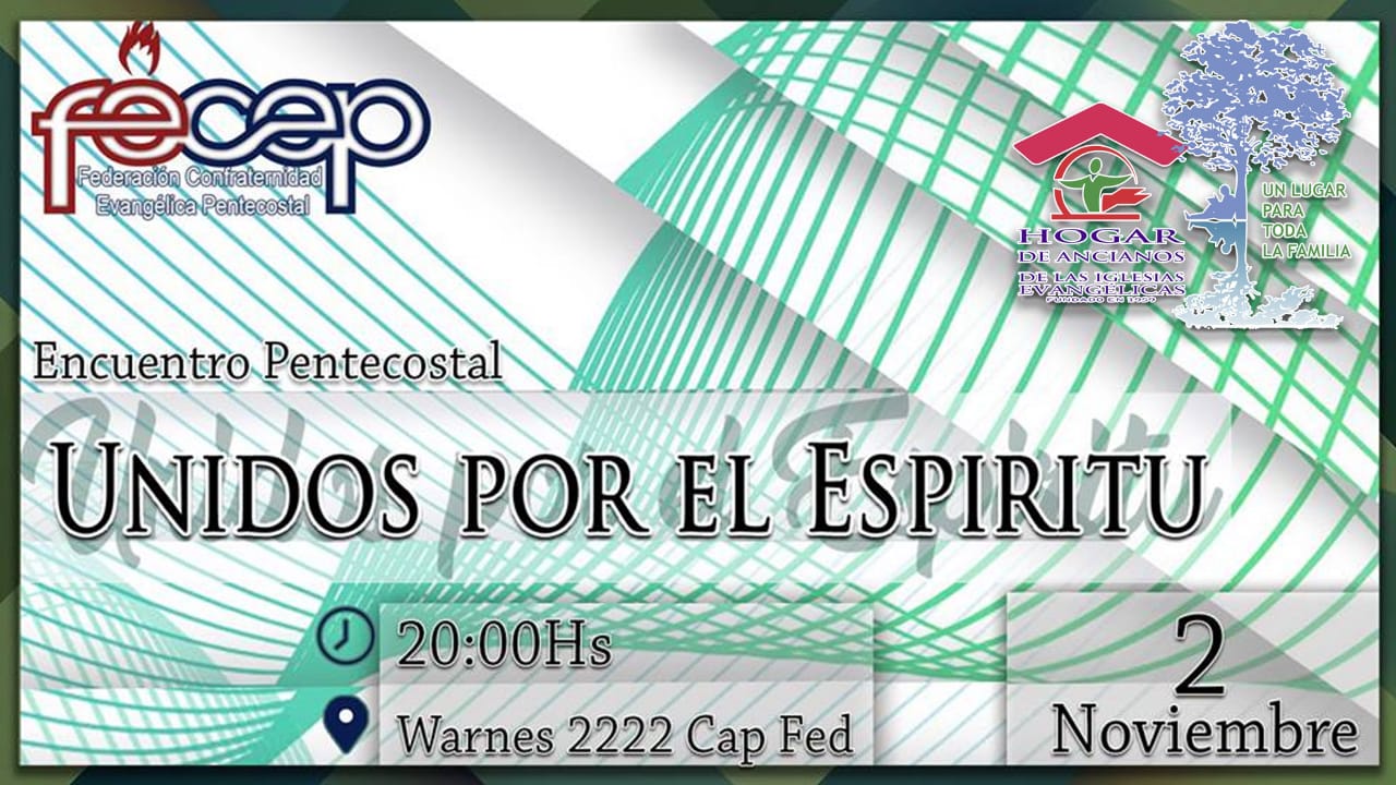 FECEP celebrará un encuentro Pentecostal bajo el lema “Unidos por el Espíritu”, que será una fiesta espiritual que tendrá como propósito UNIR al pueblo pentecostal para un tiempo de GRATITUD y ADORACIÓN al Señor. La cita es el viernes 2 de noviembre a las 19 hs. en las instalaciones de la Iglesia Una Vida Mejor, ubicada en Av. Warnes 2222, C.A.B.A.