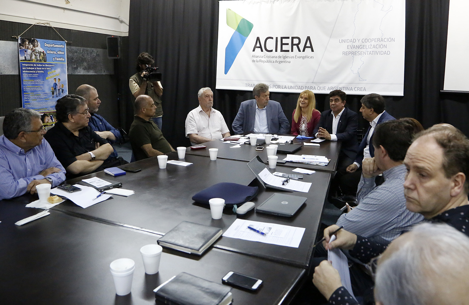 Durante el encuentro la intendente bonaerense reconoció y agradeció la labor que llevan adelante las iglesias evangélicas en su distrito con acciones como apertura de comedores infantiles durante y fuera de horario escolar, hogares de ancianos, etc. Asimismo destacó que no hay lugar por donde se camine en La Matanza en que no haya una iglesia evangélica. Están presentes en cada barrio y es el culto mayoritario en el distrito, considerado «la quinta provincia» del país por su población cercana a dos millones de habitantes. Además, compartió con los presentes la triste noticia de una bebé fallecida como producto de las inundaciones ocurridas en el mencionado distrito. Por último, anunció la próxima creación de la Sub Secretaría de Culto en La Matanza, designando ante la sorpresa de los miembros de ACIERA, como responsable de esa área al pastor Gabriel Ciulla, Secretario Coordinador de la JUCOPPAM, presente en la reunión junto a su esposa Sonia, y Gabriel, uno de sus hijos.