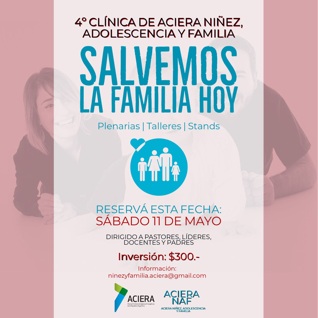 Una vez más nos acercamos a líderes, pastores, padres, maestros de escuela dominical y a nuestras familias para recordarles la importancia central que ocupan lo niños en nuestros hogares. Por este motivo, la mesa interministerial de ACIERA Niñez, Adolescencia y Familia nos convoca a orar y participar activamente en lo que será la realización de la Cuarta Clínica de Niñez, Adolescencia y Familia.