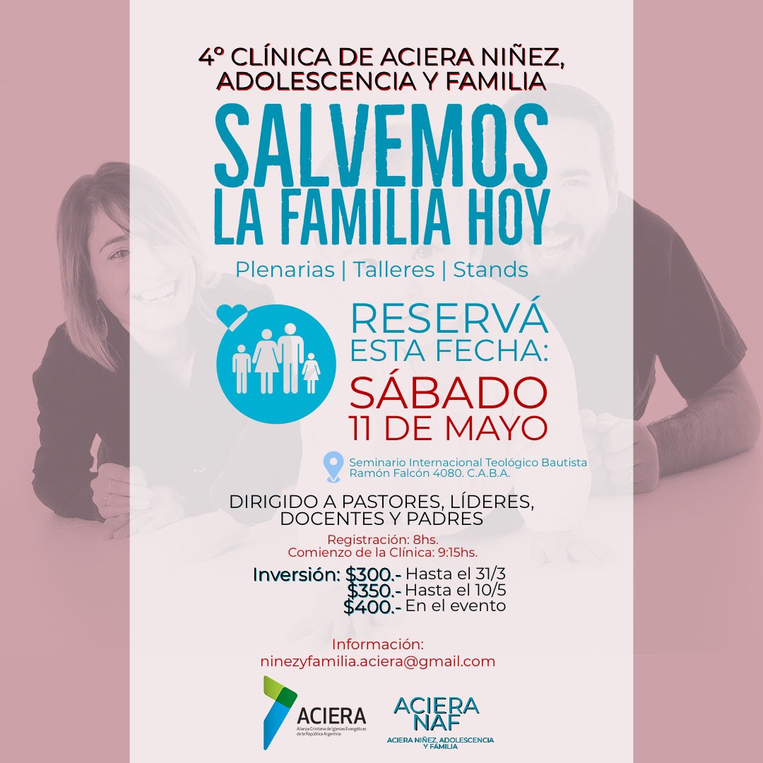 Este año el lema es: “Salvemos a la Familia Hoy”. La Mesa interministerial de ACIERA Niñez, Adolescencia y Familia convoca a orar y participar activamente de este encuentro.