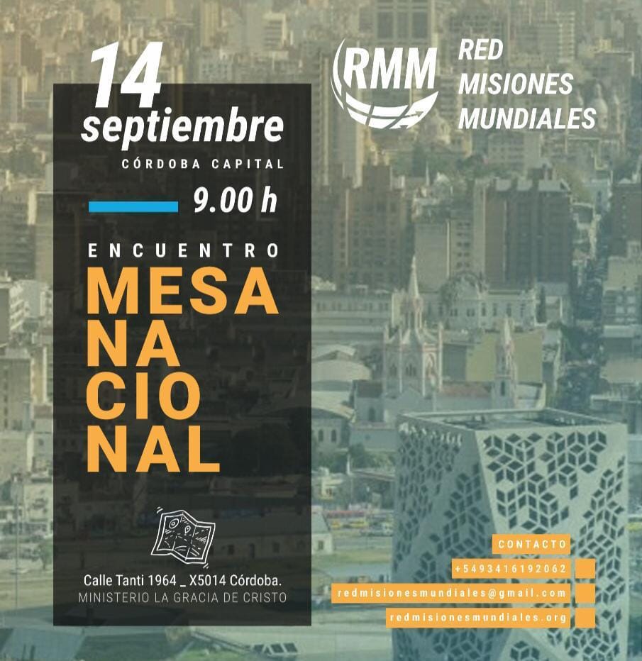 El próximo sábado 14 de septiembre se llevará a cabo en la ciudad de Córdoba el tercer encuentro nacional de la Red Misiones Mundiales, que tiene como propósito continuar movilizando a la Iglesia Evangélica Argentina hacia las misiones mundiales.