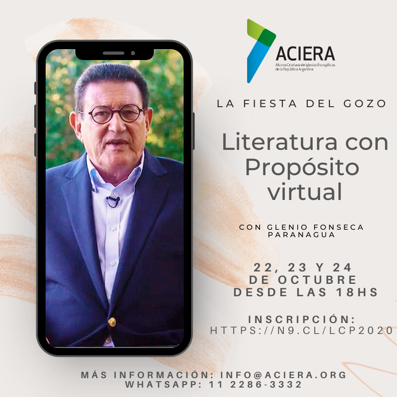 Buenos Aires, 2 de octubre 2020 — Organizado por ACIERA y el ministerio “Literatura con propósito”, se desarrollará los días 22, 23 y 24 de octubre a partir de las 18 horas, un nuevo tiempo de estudio y retiro espiritual para pastores con Glenio Fonseca Paranaguá como orador.