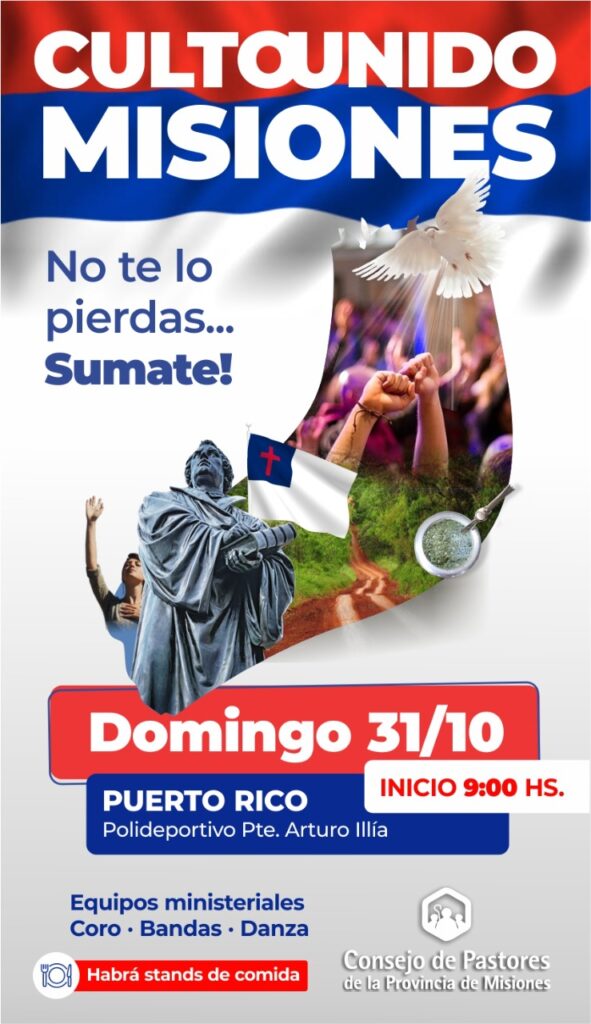 El día 31 de octubre lo hará Maquinista Savio, a partir de las 14 horas se realizará la Gran Caminata de las Iglesias en las calles. El punto de encuentro es El Ceibo y Carlos del García. Convocados por el Consejo de Pastores de Maquinista Savio. El mismo día San Juan realiza una marcha desde la Plaza 25 de Mayo a las 17hs. En Misiones, en la ciudad de Puerto Rico, se llevará a cabo un culto unido desde las 9 de la mañana el 31 de octubre. En el Polideportivo Pte. Arturo Ilía.