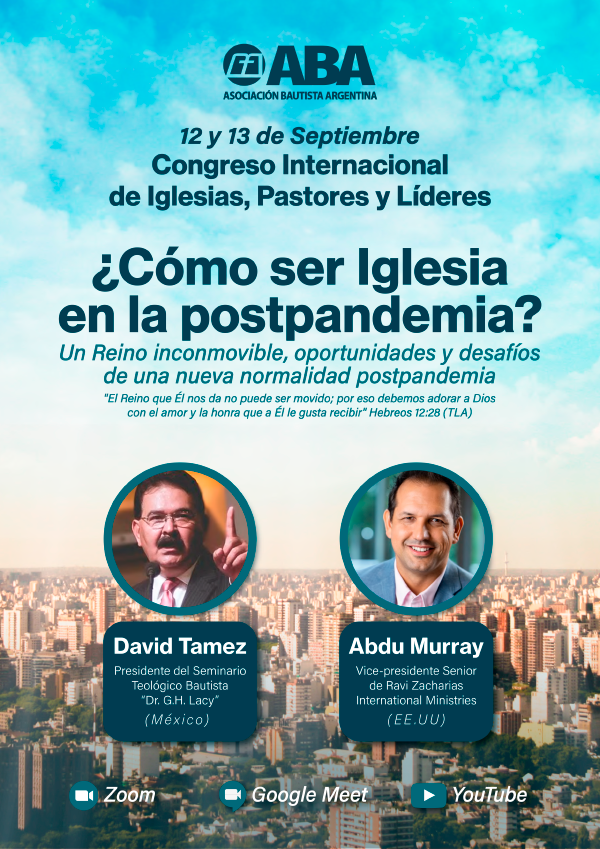 Buenos Aires, 4 de septiembre 2020 — La Asociación Bautista Argentina desarrollará un Congreso Internacional de Iglesias, Pastores y Líderes on line sobre el tópico: “¿Cómo ser iglesia post-pandemia? los días 12 y 13 de septiembre 2020.