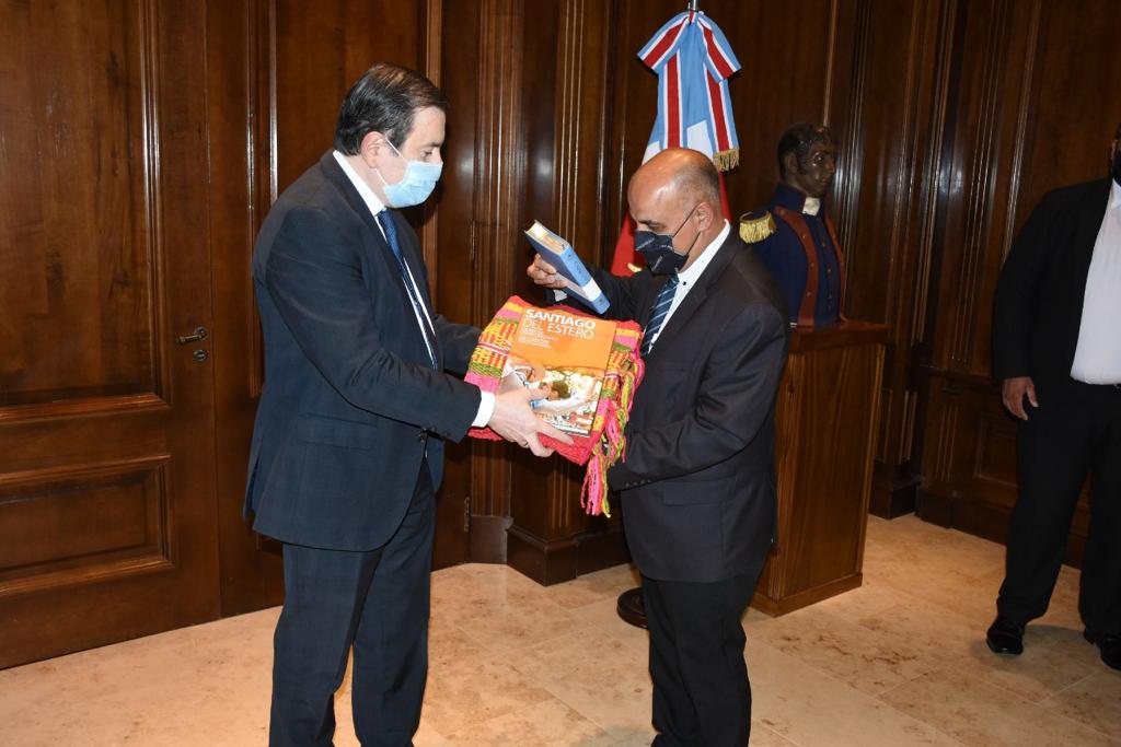 Previo a la apertura del Parque Temático Educativo, en el Salón de Acuerdos, Juan Felipe Ibarra, los visitantes fueron recibidos por el Dr. Gerardo Zamora, gobernador de la Provincia, donde en el intercambio protocolar se le hizo entrega de un ejemplar de la Biblia.
