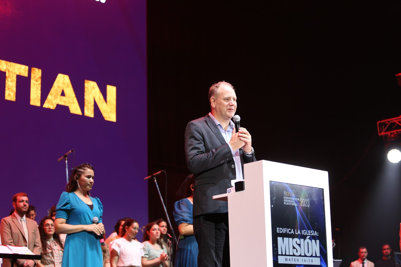 Buenos Aires, 15 de noviembre de 2023 — La celebración de los 70 años de la Asamblea Apostólica en Argentina tuvo lugar en el Estadio Luna Park de la ciudad de Buenos Aires, allí asistió el pastor Christian Hooft, presidente de ACIERA, acompañado de su esposa María José. Luego de dar los saludos de parte de la Alianza ante un estadio colmado de fieles, y después de felicitar al presidente de la institución en Argentina, pastor Alberto Ahrens, por la inmensa y fructífera labor desarrollada, Hooft oró por los presentes agradeciendo a Dios por su fidelidad en todos estos años.