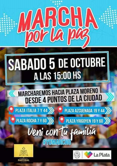 5 DE OCTUBRE: MARCHA POR LA PAZ EN LA CIUDAD DE LA PLATA