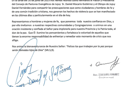 Salta, 30 de octubre de 2023 — El sábado 28 en plaza España de la ciudad de Salta se dio cita a la Iglesia Evangélica salteña convocados por el Consejo […]