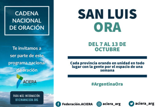 Continúa la Cadena Nacional de Oración en SAN LUIS. ACIERA organiza e invita a participar para orar por y en cada provincia. Cada provincia orando en unidad por el espacio […]