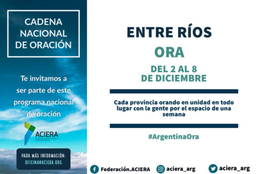 Continúa la Cadena Nacional de Oración en TUCUMÁN. ACIERA organiza e invita a participar para orar por y en cada provincia. Cada ciudad orando en unidad por el espacio de […]