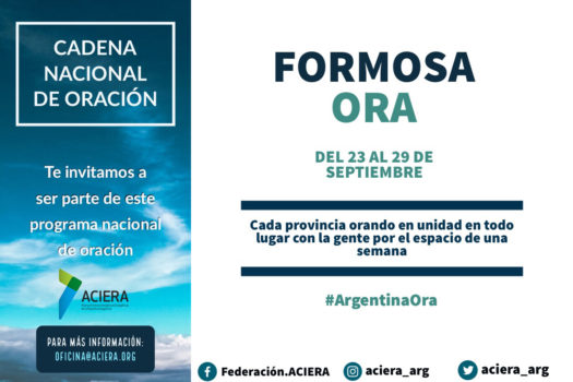 Continúa la Cadena Nacional de Oración en FORMOSA. ACIERA organiza e invita a participar para orar por y en cada provincia. Cada ciudad orando en unidad por el espacio de […]