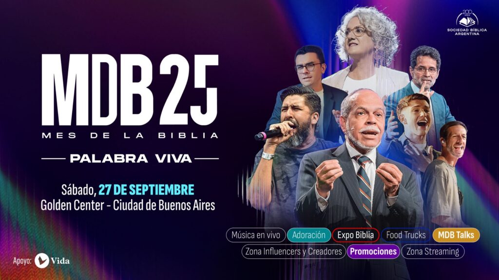 Buenos Aires, 26 de septiembre de 2025.- Este sábado 27 del corriente en las instalaciones del Centro de Convenciones Golden Center, sito en la intersección de las avenidas Intendente Cantilo e Intendente Güiraldes, en Ciudad Autónoma de Buenos Aires, en el marco de las celebraciones por los 200 años de la Sociedad Bíblica en Argentina y el Mes de la Biblia, llega MDB25 Palabra Viva, un evento único que reúne a miles de personas para vivir un día transformador con la Palabra de Dios en el centro.