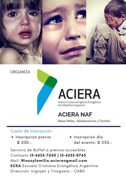 Cabe destacar que esta sera la tercer actividad que desarrolla la Mesa de Niñez , Adolescencia y Familia de ACIERA , que viene trabajando hace tres años , con un equipo compuesto por mas de 22 ministerios comprometidos con las nuevas generaciones . Durante el 2016 se llevó a cabo la primera cumbre con más de 400 participantes y posteriormente un foro sobre prevención de abuso infantil , cuya iglesia anfitriona fue la Iglesia Cristiana Bíblica de la ciudad de Buenos Aires. Ahora en su tercer edición se realizará esta clínica de Niñez , Adolescencia y Familia , con un temario para tratar las problemáticas que hoy afectan a la niñez y como dar respuesta desde la iglesia.