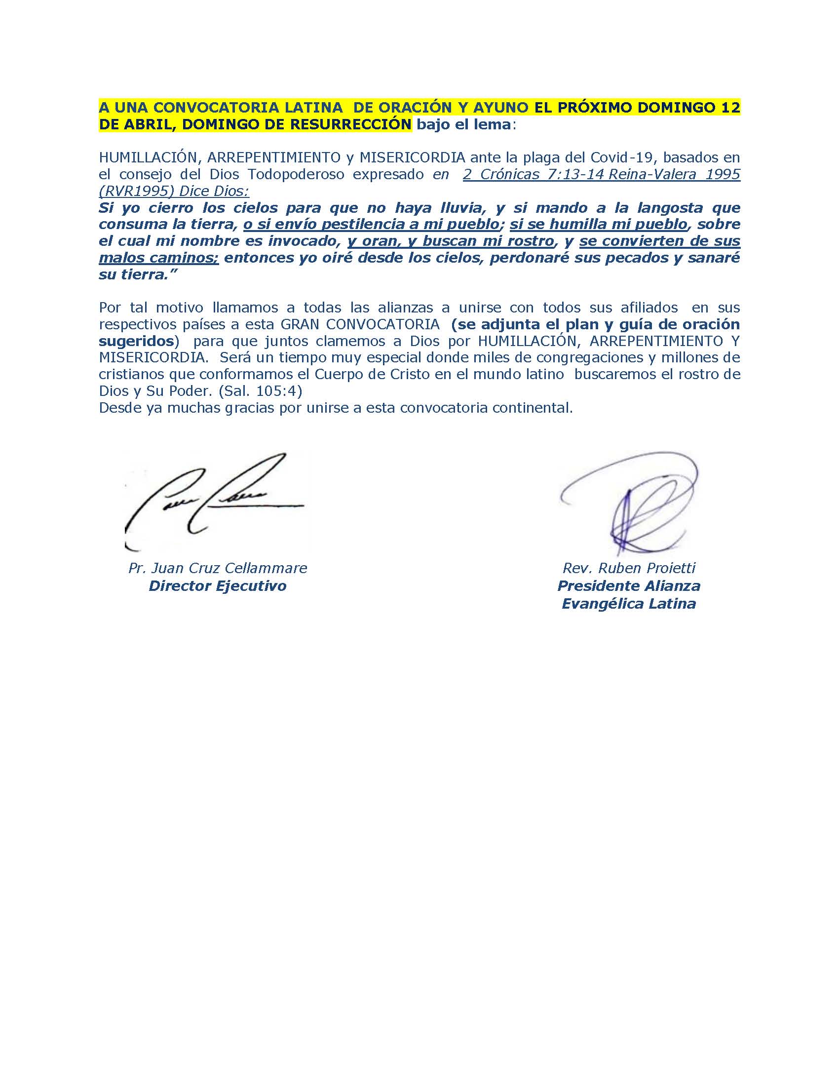 Continuando en este sentir, ACIERA hace suya la invitación de la AEL (Alianza Evangélica Latina) y CONVOCA a las iglesias de Argentina a unirse al clamor del mundo evangélico latino este próximo domingo de resurrección.
