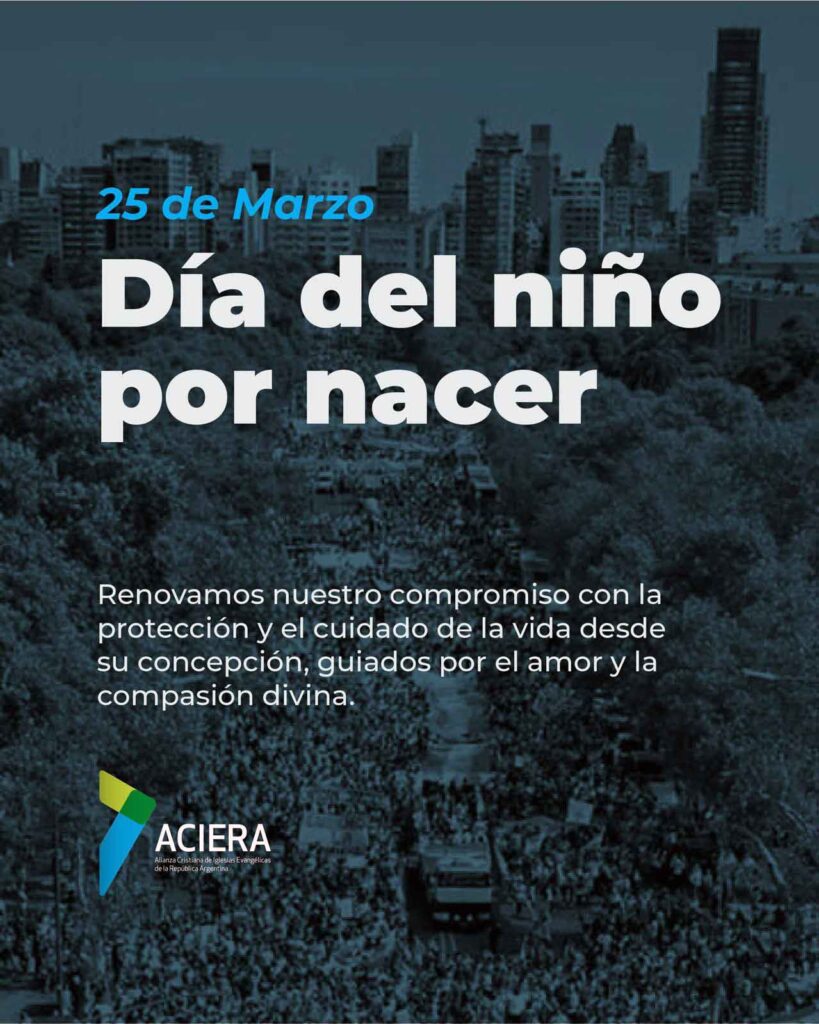 Buenos Aires, 24 de marzo de 2024.- Desde la Alianza Cristiana de Iglesias Evangélicas de la República Argentina (ACIERA), creemos que la conmemoración del Día del Niño por Nacer, celebrado el 25 de marzo, nos brinda una oportunidad invaluable para reflexionar sobre el valor supremo de la vida en gestación. En un mundo que a menudo se encuentra inmerso en debates éticos y políticos sobre el tema del aborto y los derechos reproductivos, esta conmemoración nos invita a detenernos y contemplar la belleza y lo sagrado de cada vida que está comenzando su camino en el útero materno.