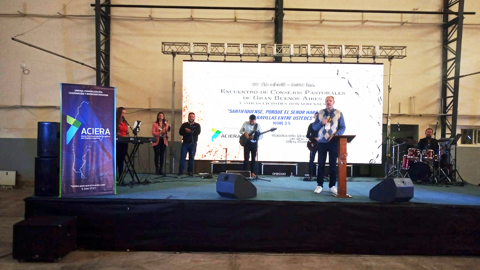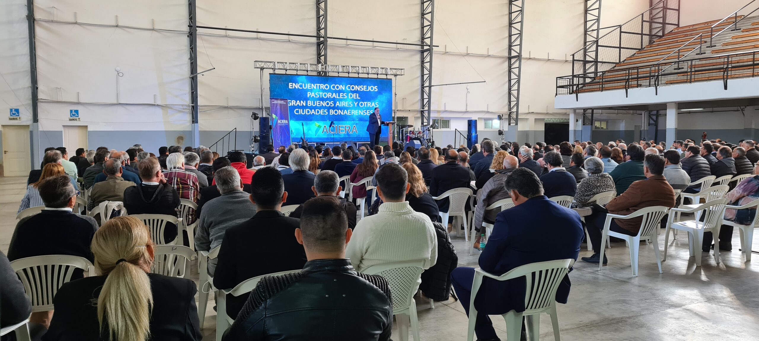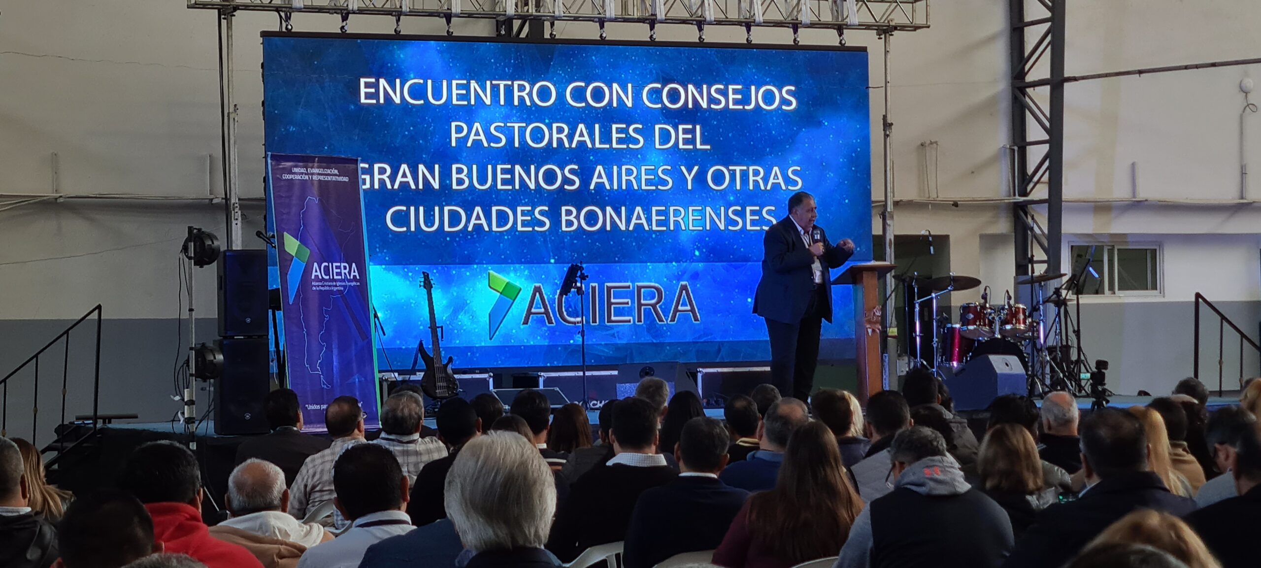 Buenos Aires, 29 de abril 2022 — Más de trescientos pastores representantes de 50 Consejos Pastorales del Gran Buenos Aires y algunas otras ciudades de la provincia se dieron cita este miércoles 27 de abril convocados por la Alianza Cristiana de Iglesias Evangélicas de la República Argentina (ACIERA). El encuentro que se realizó en Pilar tuvo como objetivo seguir brindando un espacio de unidad pastoral y de construcción entre los diferentes Consejos de Pastores. En la ocasión, tuvo la meditación central de la Palabra de Dios el pastor Norberto Carlini, procedente de la ciudad de Rosario. La misma trató sobre la obra evangelizadora de la mujer samaritana y la necesidad de imitarla para alcanzar nuestras ciudades. Luego de la predicación, hubo un momento de intensa oración y ministración a los presentes en el altar.