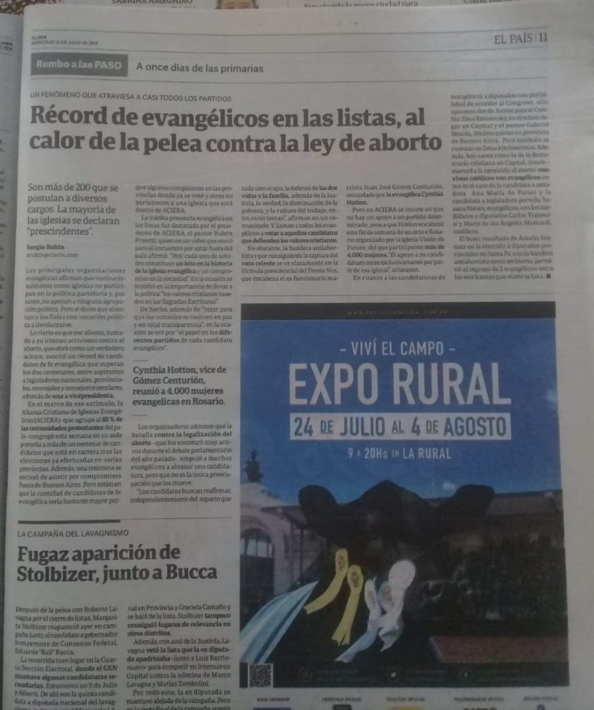 Indudablemente los argentinos nos encontramos frente a un nuevo compromiso cívico para emitir nuestro voto de manera responsable, velando por el cuidado del acto eleccionario y el escrutinio del mismo en todo el territorio nacional, pidiendo a nuestro Dios, sabiduría antes de emitir nuestro sufragio.