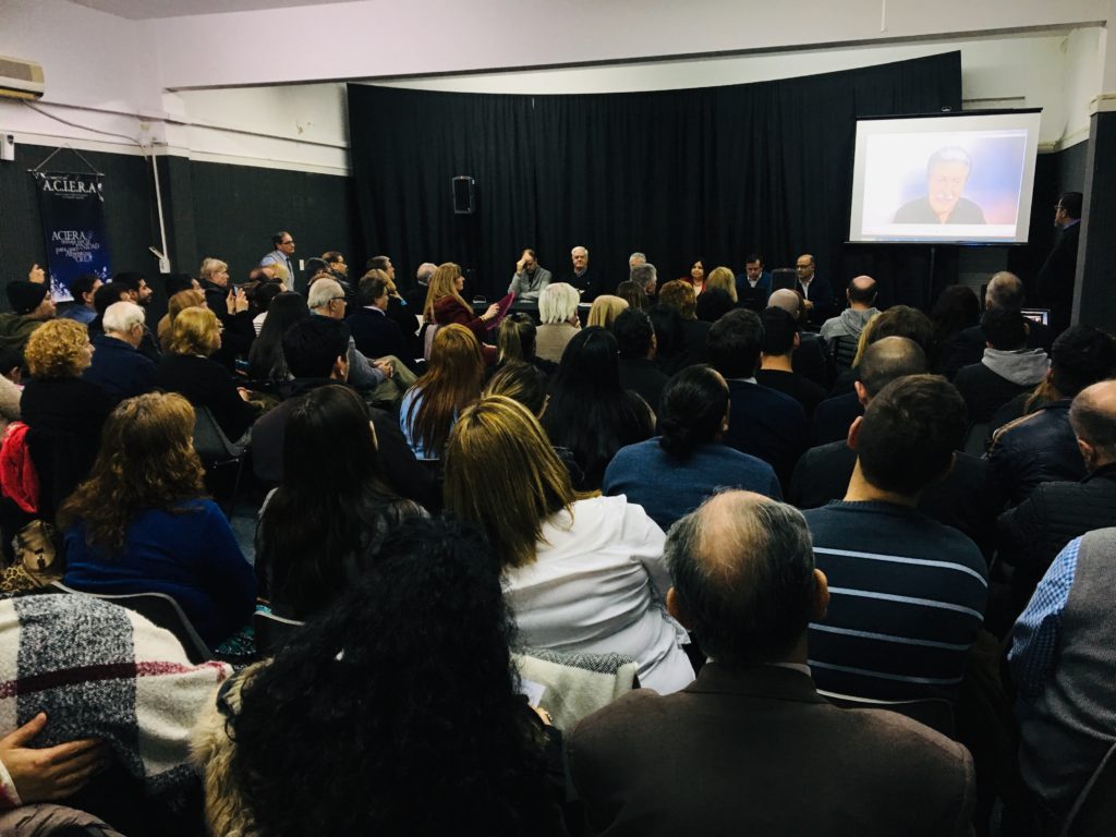 A continuación los presentes siguieron con atención el video con las palabras del presidente de ACIERA, pastor Rubén Proietti, quien por estar en el exterior, dejó sus saludos y expresó su enorme satisfacción al saber que son tantos los candidatos evangélicos de diferentes partidos. Recordó cuando comenzaron hace años con tan solo 8 candidatos y de cargos menores. Pero el Señor fue confirmando este llamado a los cristianos con vocación política y hoy asistimos al mayor número de candidatos de la historia evangélica en el país. Los animó a no desmayar si no son elegidos porque dijo, “Ustedes ya están en carrera. No es solo intención, son candidatos oficiales. Y si no es en esta elección, será en la próxima o en la próxima, pero ya están en carrera. Hoy cada uno de ustedes constituye un hito en la historia de la iglesia evangélica y su compromiso con la sociedad”.