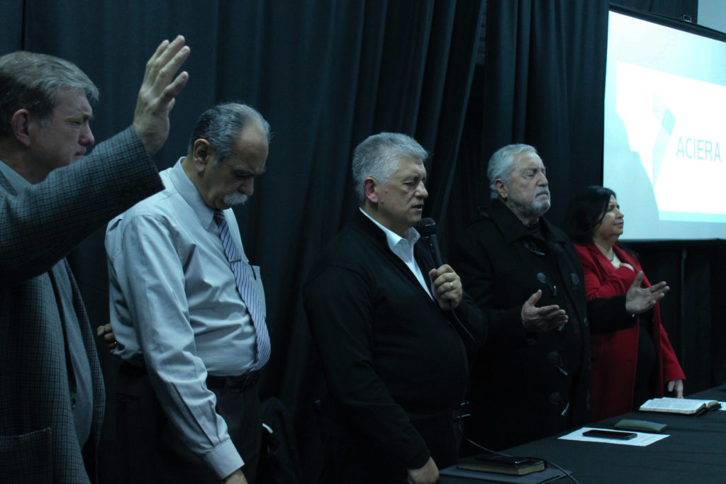 Luego el Director General de la entidad, pastor Jorge Gómez, resaltó y puso en valor la diversidad de partidos representados por los asistentes, y leyó la nómina de los candidatos presentes y ausentes y los diferentes partidos que representan. Inmediatamente, Ligia Wurfel,secretaria de ACIERA, llevó adelante el primer momento de oración.
