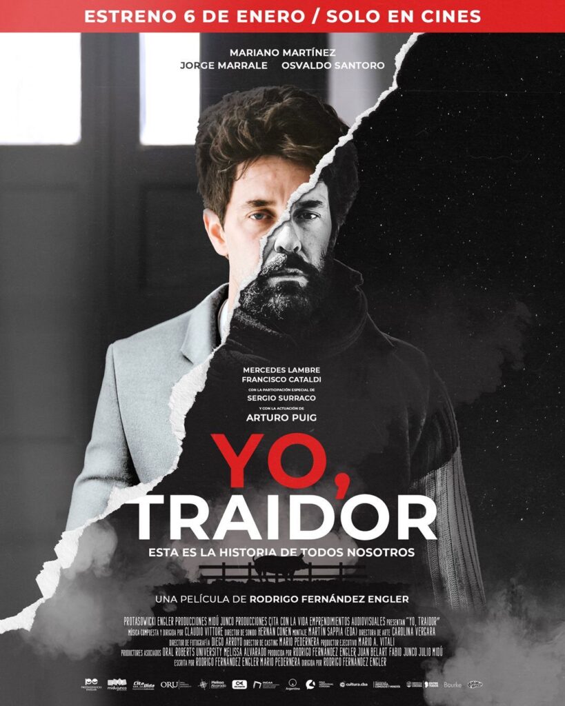 Buenos Aires, 5 de enero 2022 — Tanto en Buenos Aires como en Córdoba se presentaron ya los Avant Premiere del filme protagonizado por Mariano Martinez y un destacado elenco, titulado «Yo, traidor», basado en la historia bíblica del Hijo Pródigo que estrena a nivel nacional mañana 6 de enero, sólo en cines. La película está dirigida por Rodrigo Fernández Engler y producida por Cita con la Vida Emprendimientos Audiovisuales, Midú Junco Producciones y Protasowicki Engler Producciones. Además de la participación actoral del ex integrante de ‘Esperanza Mía’ y ‘Valientes’, también integran el elenco Arturo Puig, Jorge Marrale, Osvaldo Santoro, Mercedes Lambre, Sergio Surraco y Francisco Cataldi.
