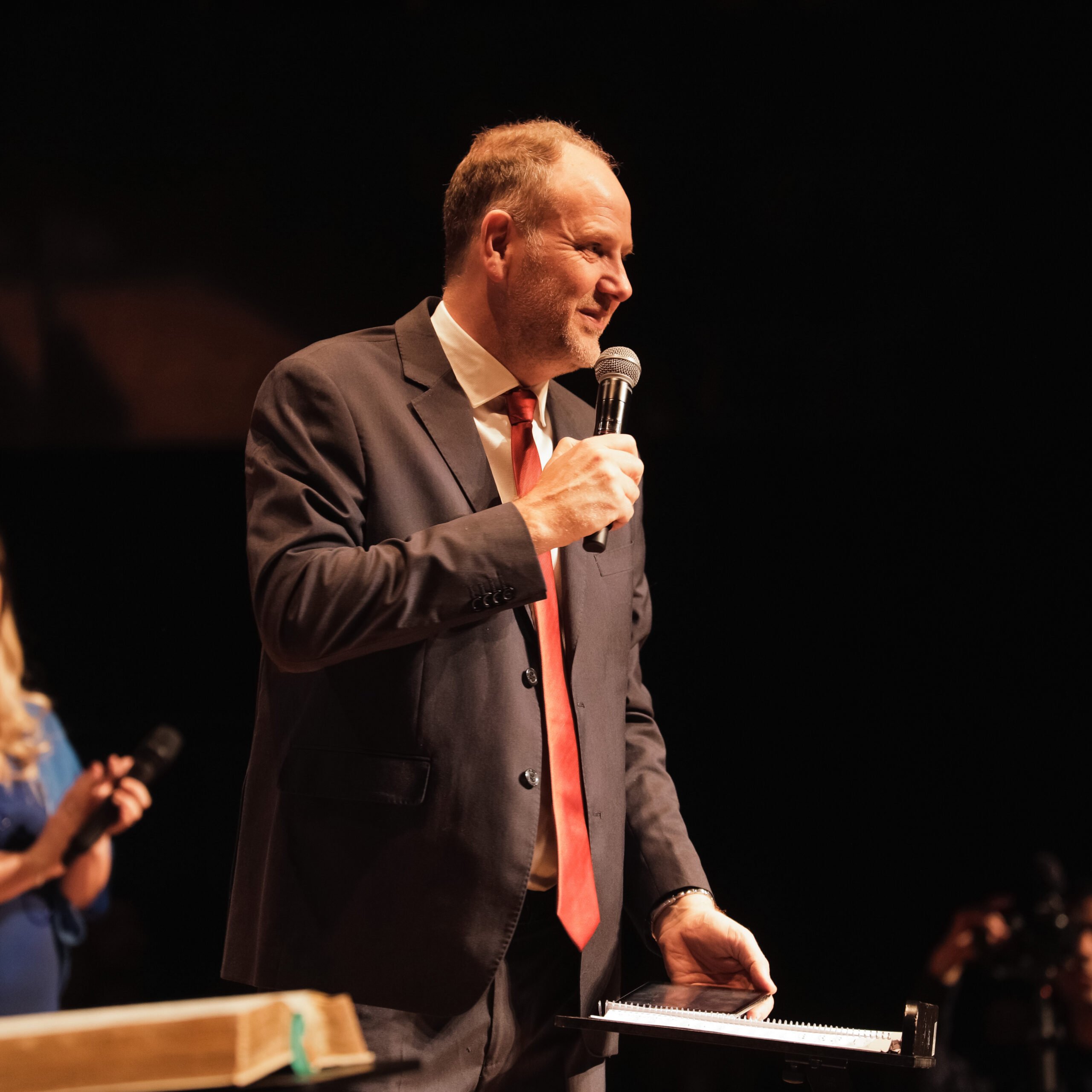 Un momento de emoción y reconocimiento fue cuando el pastor Christian Hooft llamó a Carlos Annacondia, el muy querido evangelista y conferencista internacional, al escenario para brindarle un homenaje por sus 40 años de recorrido y labor de comunicar la Palabra de Dios. El pastor Jorge Sennewald le hizo entrega de una placa conmemorativa, tras lo cual Annacondia oró a Dios por Argentina.