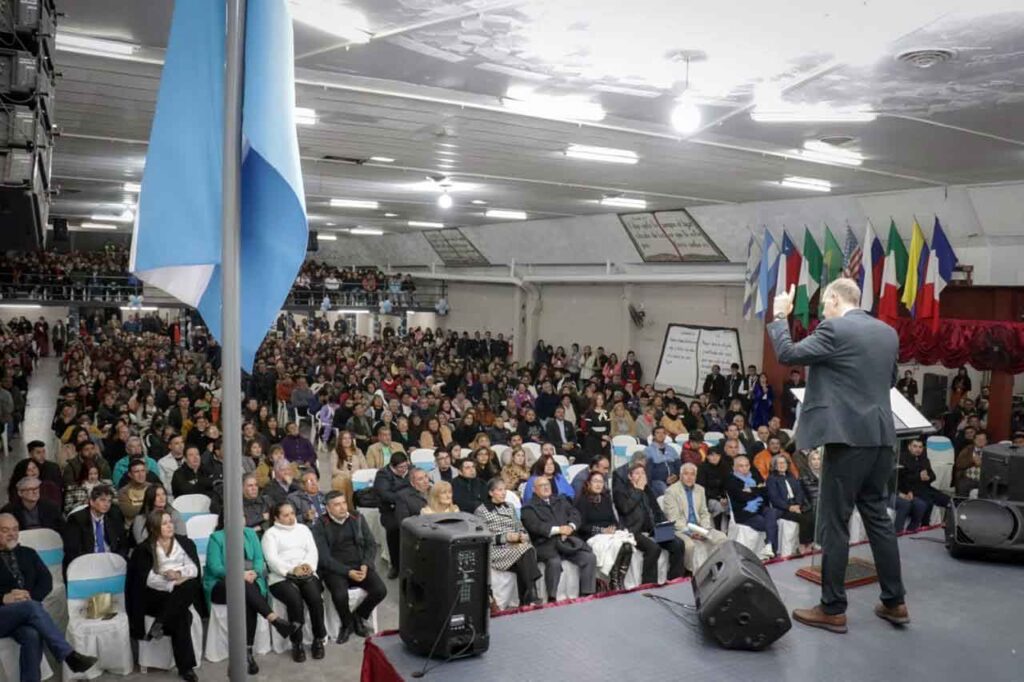Buenos Aires, 11 de julio de 2024.- Durante dos jornadas, los días 8 y 9 de Julio, las iglesias de San Miguel de Tucumán, mayormente nucleadas en el MAP (Ministros Amigos con Propósitos) y en la Federación de Pastores, con motivo de la celebración del Día de la Independencia, se reunieron en unidad en dos eventos significativos. Los anfitriones invitaron al presidente de ACIERA, pastor Christian Hooft, para que comparta la Palabra de Dios, primero en la reunión unida del lunes 8 por la noche, en las instalaciones del Templo de los Milagros de Jesús, y que congregó a un par de miles de fieles de las iglesias de San Miguel de Tucumán.