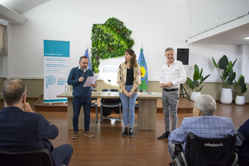 Por la provincia estuvieron el subsecretario de Relaciones Internacionales e Institucionales, Mario Oporto, junto a la directora provincial de Relaciones con la Comunidad Agustina Quiroga y al director de Cultos Juan Torreiro, quien entregó los diplomas a los pastores evangélicos que desarrollan su labor en los municipios de La Matanza, Lomas de Zamora, Malvinas Argentinas, General San Martín, Marcos Paz, Merlo, Moreno, Pilar, Quilmes, General Rodríguez, Tigre. Y las asociaciones FAIE y ACIERA. Además de la presencia de los directores de culto de los distintos municipios de la provincia.