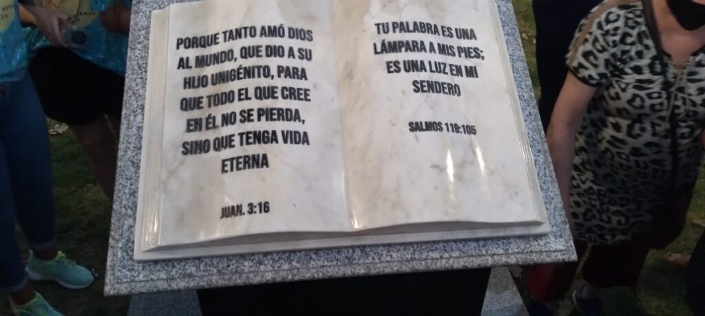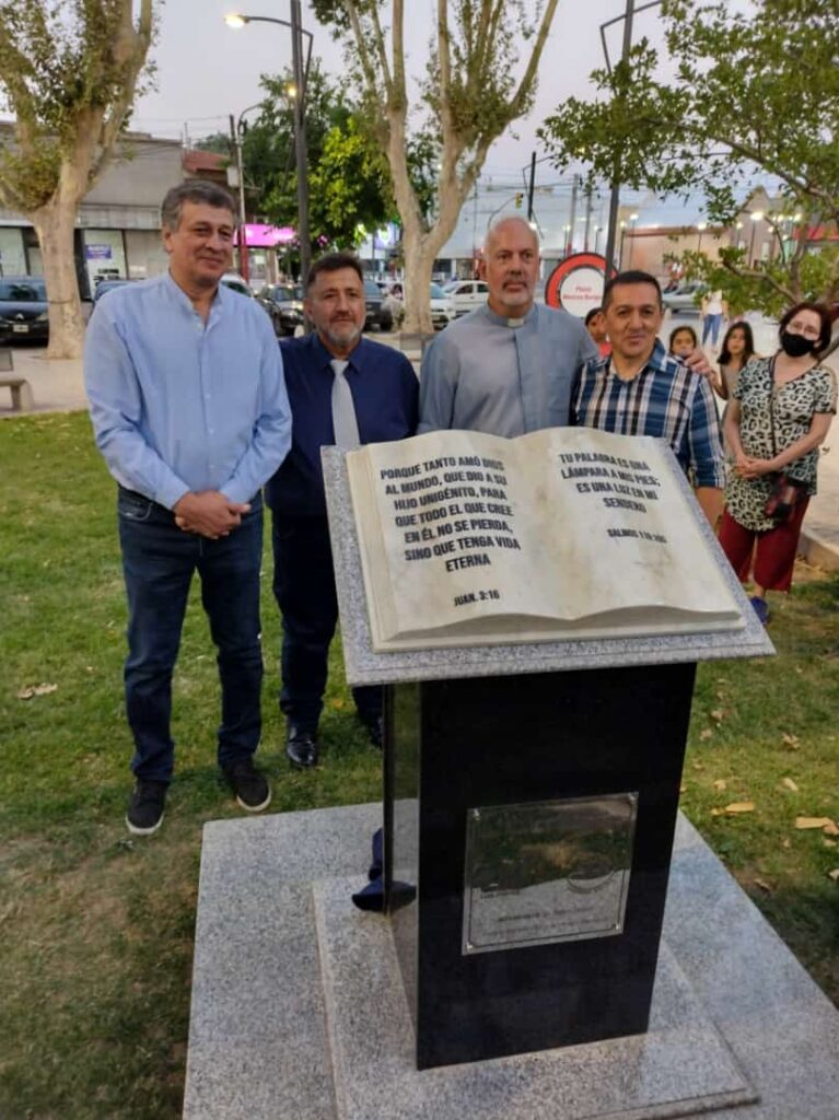 El pasado 1 de diciembre se inauguró un monumento a la Biblia en una ceremonia encabezada por el intendente Daniel Orozco y los integrantes de diferentes cultos religiosos del departamento de Las Heras, en la plaza Marcos Burgos. Allí se encontraban representantes del Consejo Pastoral de la ciudad, entre los cuales mencionamos a su presidente el pastor Daniel Ortega.