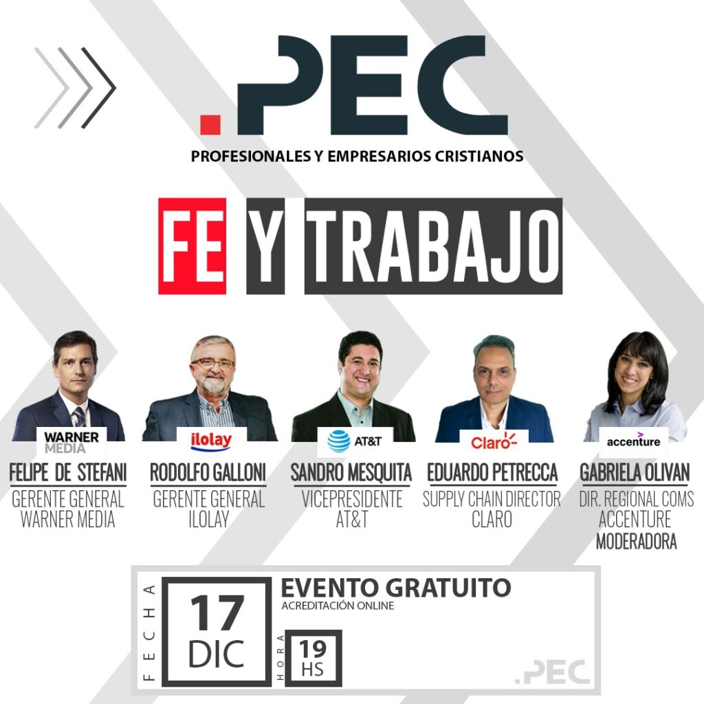 El próximo 17 de diciembre con la participación de CEOs y directores de compañías a nivel internacional, tales como Felipe De Stefani (Gerente General Warner Media), Rodolfo Galloni (Gerente General iLolay), Sandro Mesquita (Vicepresidente AT&T) y Eduardo Petrecca (Supply Chain Director Claro) y la moderación de Gabriela Olivan (Directora regional de comunicaciones Accenture) se desarrollará una charla imperdible sobre “Fe y trabajo”.