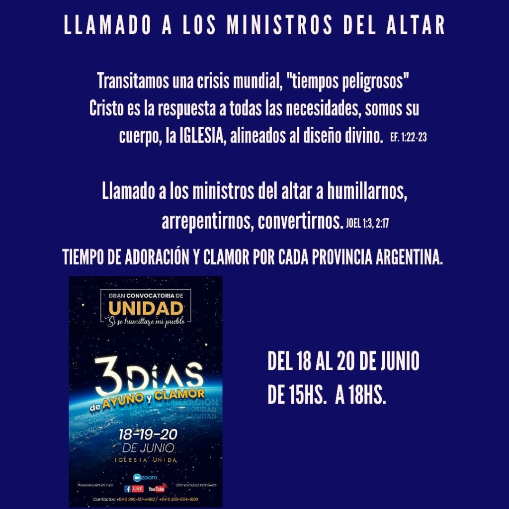 días de ayuno y clamor, donde se invita a la iglesia en general a sumarse