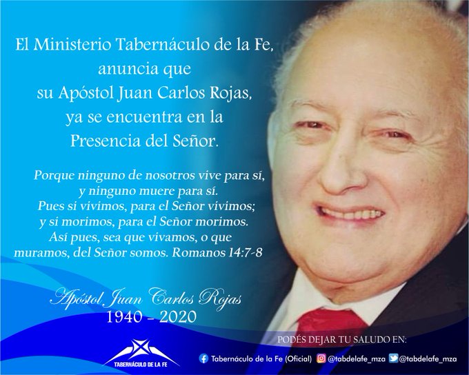 El domingo 22 del corriente falleció este verdadero líder de la provincia de Mendoza, quien pastoreó por muchos años la iglesia Tabernáculo de la Fe junto a su familia.