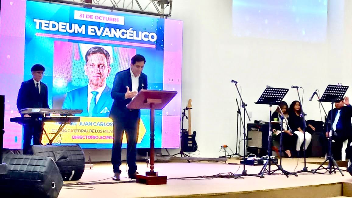 “Hermosa celebración de la iglesia evangélica en Jujuy junto al Sr Intendente [Raúl Jorge], diputados, concejales y pastores de toda la provincia. El Tedeum Evangélico fue organizado por el consejo de pastores de Jujuy. Un honor compartir la palabra representando a ACIERA a nivel federal”, señaló Juan Carlos Bazán.