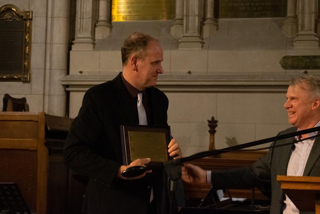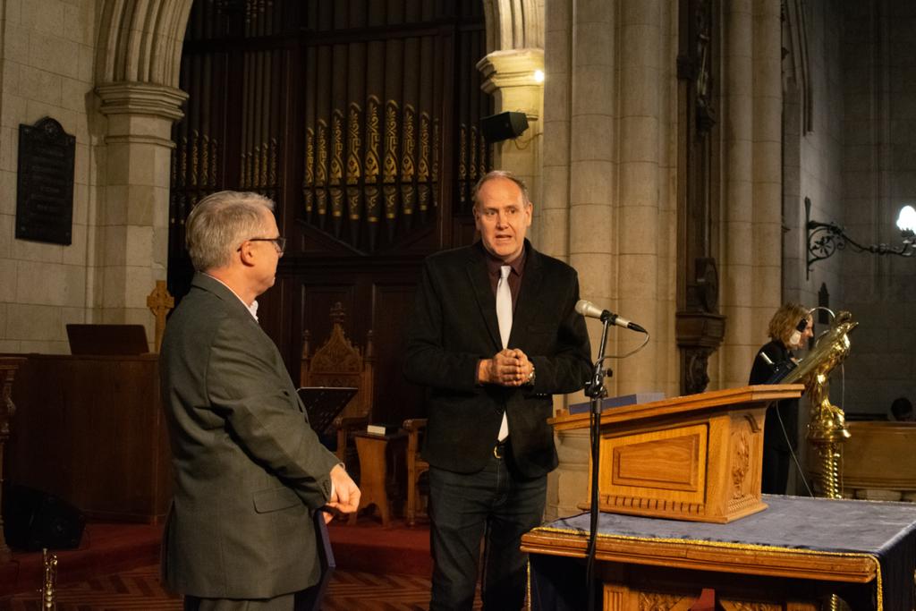 Buenos Aires, 28 de septiembre de 2022 — En el marco de la celebración del mes de la Biblia la Sociedad Bíblica Argentina (SBA) llevó a cabo una serie de charlas y conferencias alusivas al tema. En la noche del sábado 24 de septiembre en el Templo de la Iglesia Presbiteriana San Andrés ubicada en el centro de la ciudad de Buenos Aires se llevó a cabo un acto donde se hizo entrega de una placa y un reconocimiento a la trayectoria de la Alianza Cristiana de Iglesias Evangélicas de la República Argentina. Allí el director de la SBA, Rubén Del Re, le entregó al presidente de ACIERA, Christian Hooft, la lámina que da cuenta de este recorrido de 40 años.