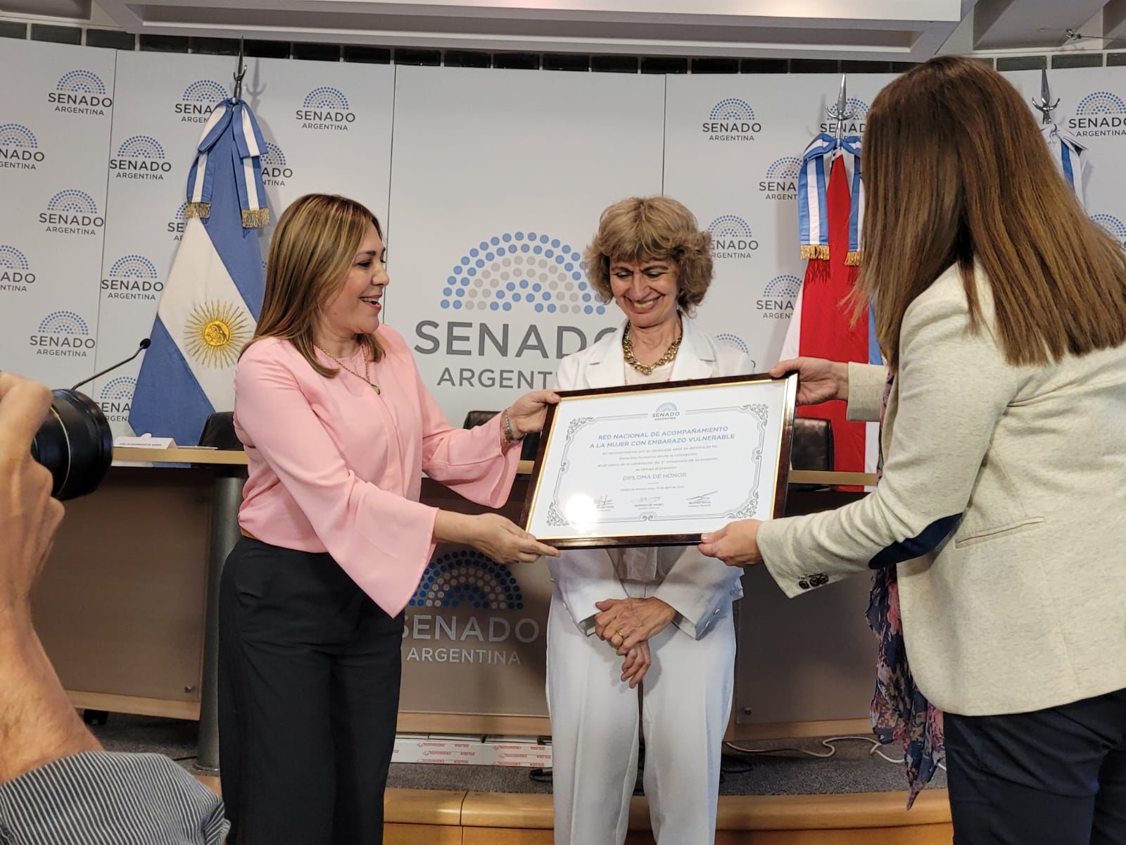 Buenos Aires, 19 de abril de 2022 — La Red Nacional de Acompañamiento a la Mujer con Embarazo Vulnerable fue distinguida por los senadores nacionales Alfredo De Angeli, María Belén Tapia y Beatriz Avila en la tarde de hoy en el Salón Auditorio Emar Acosta del edificio Alfredo Palacios, del anexo de la Cámara de Senadores de la Nación.