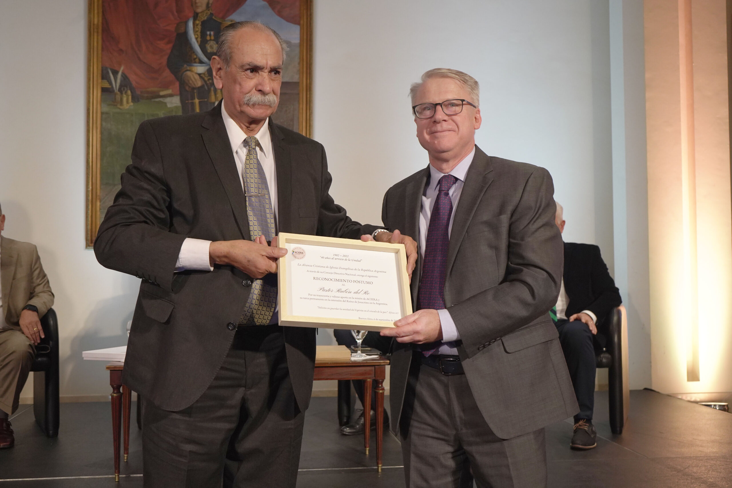 Además fueron reconocidos los pastores Dan Nuesch y Rubén Del Re, quienes partieron con el Señor hace tiempo y fueron presidentes de la Alianza.
